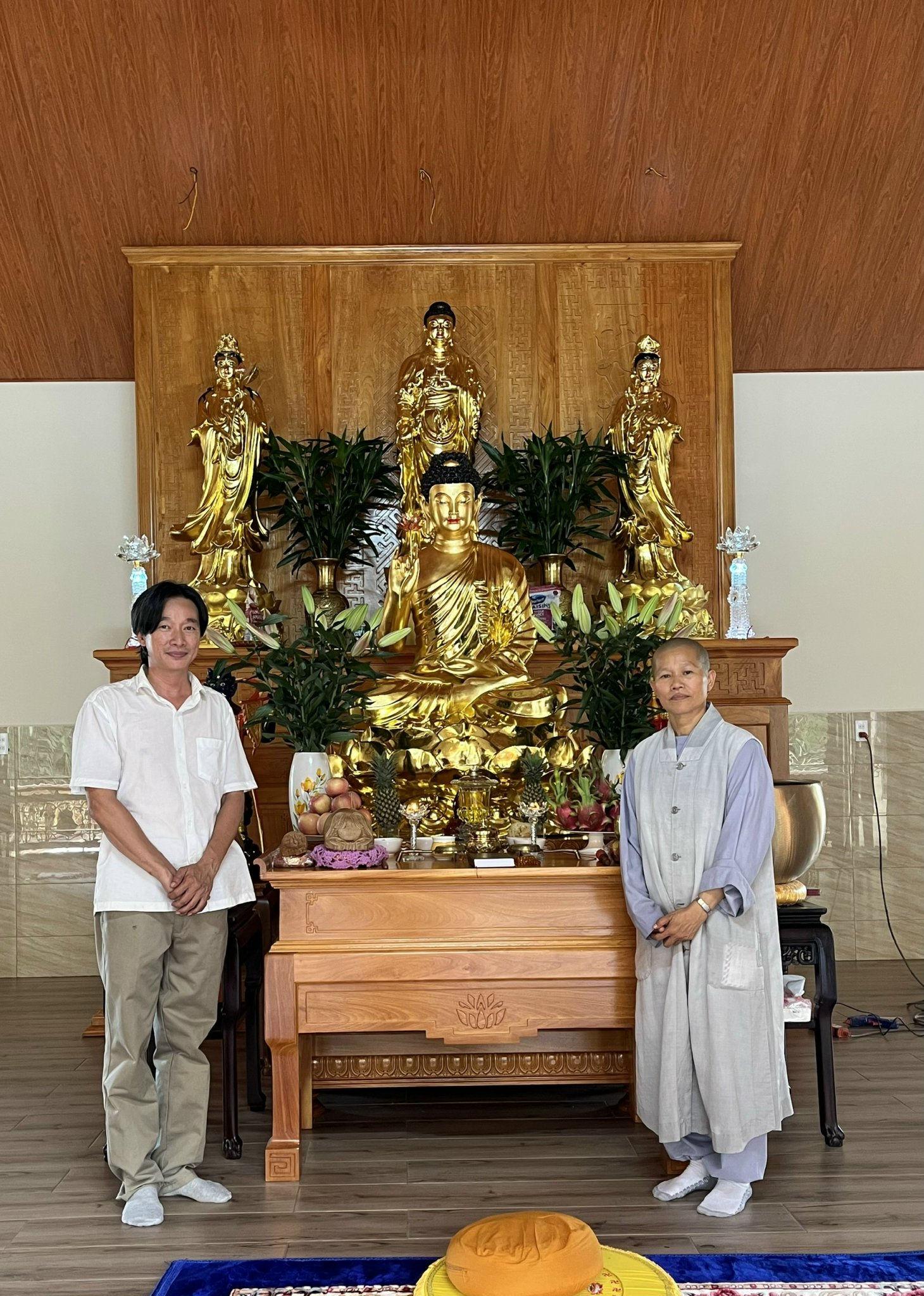 Tượng Tam Thế Phật Cao 1,6m Và Tượng Bổn Sư Cao 1,8m Đồng Dát Vàng